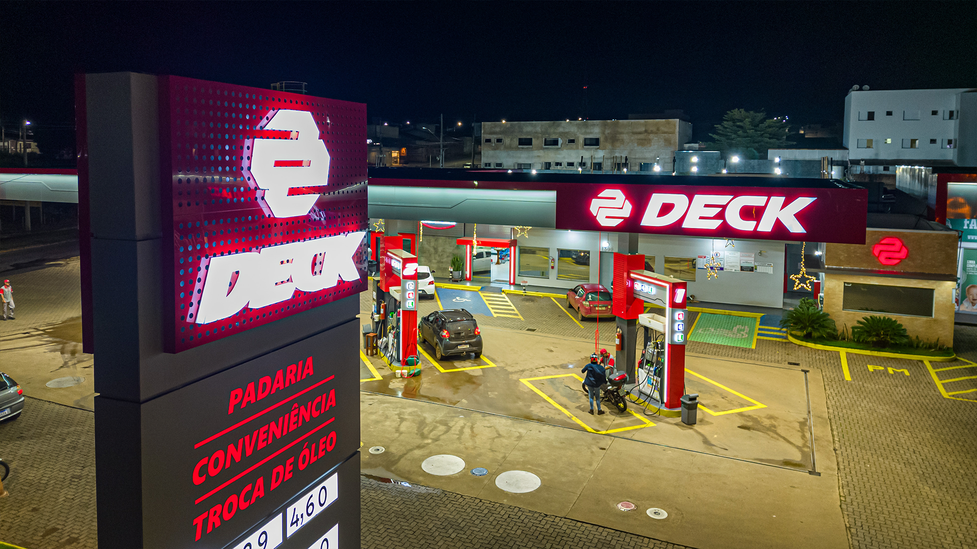 Realizamos o projeto completo de fachada do Posto Deck, incluindo o desenvolvimento e execução de totem, fachadas e outros elementos estruturais. Com foco em alta qualidade e design inovador, o trabalho envolveu a criação de um totem imponente, visível de longe, que se destaca pela iluminação estratégica e pelo logotipo em grande escala, reforçando a presença da marca. A fachada foi projetada para proporcionar um visual moderno e elegante, com materiais de excelência que garantem durabilidade e sofisticação. Cada detalhe foi cuidadosamente planejado para criar uma experiência visual impactante e acolhedora, oferecendo não só um ambiente funcional e prático, mas também uma imagem forte que comunica qualidade e confiança aos clientes.